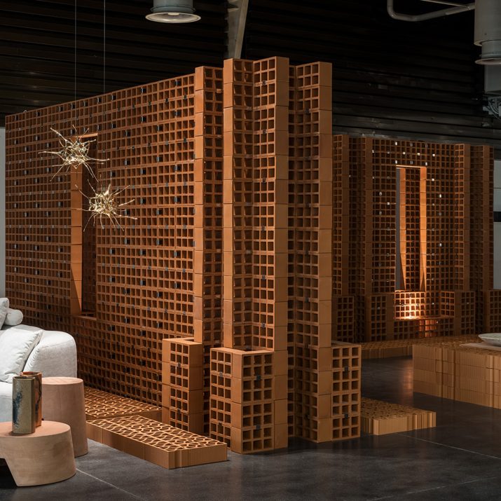 For the exhibition, several of our distinctive elements were used, selected to express formal research, artisanal quality, and versatility of application.