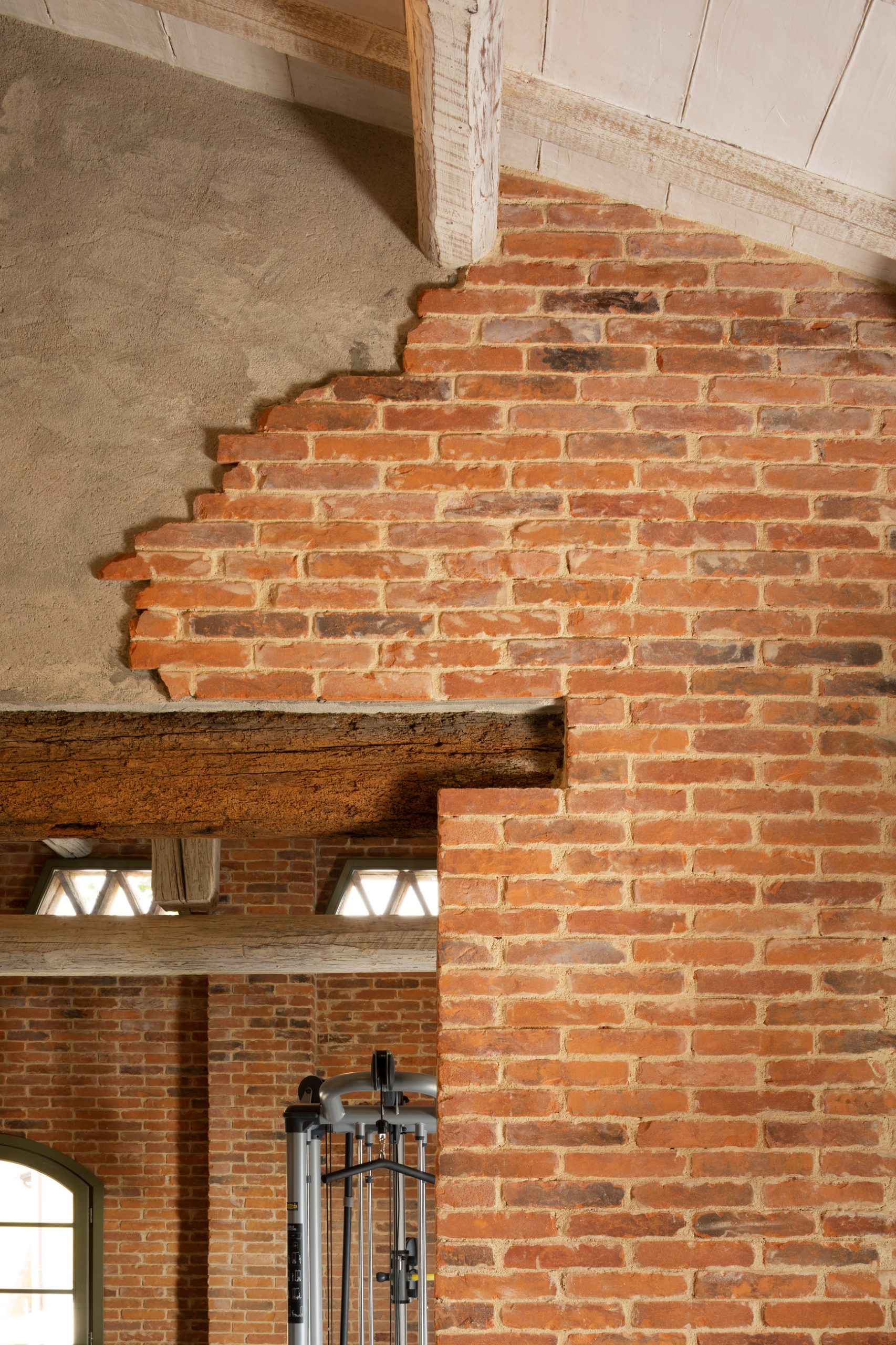 The tumbled corner bricks ensured stylistic continuity at the edges, recreating the effect of traditional masonry.