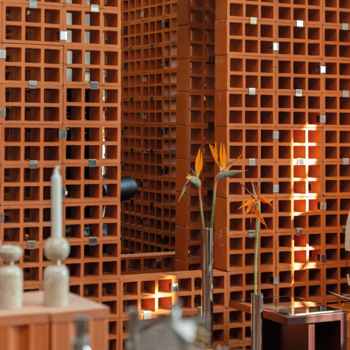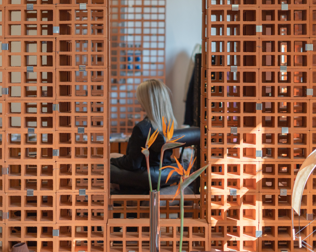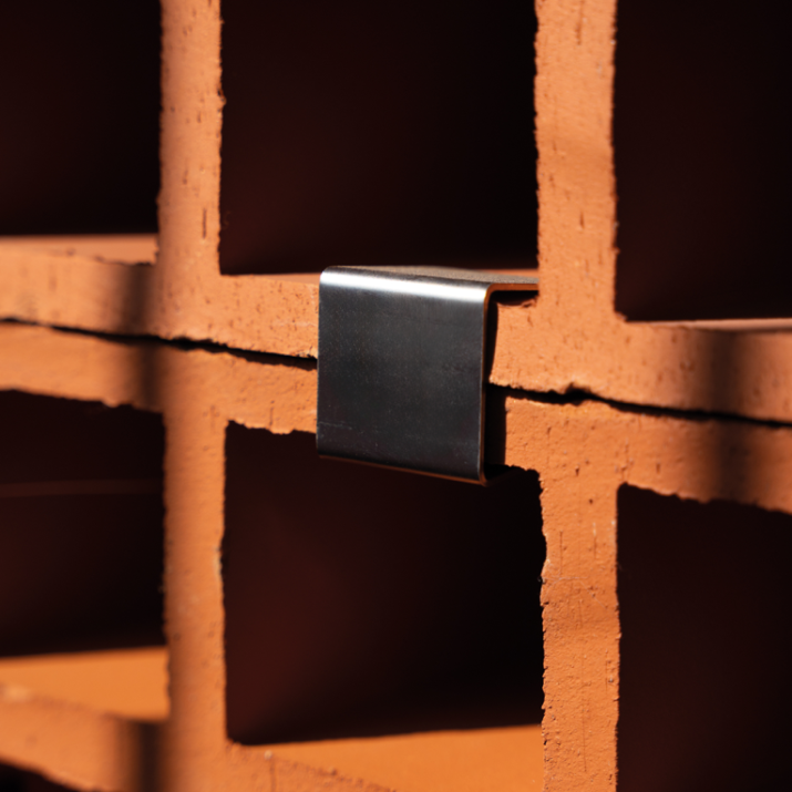 Frangisole a maglia quadrata dalla composizione essenziale. Le aperture regolari assicurano un’elevata trasparenza visiva e consentono applicazioni versatili in progetti che privilegiano linearità e ordine.