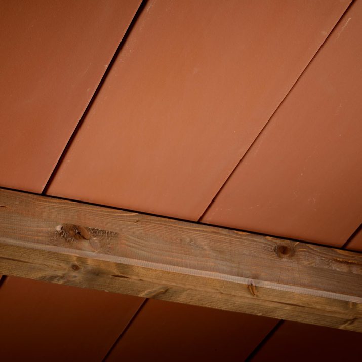 Tavella in cotto rosso con superficie liscia.