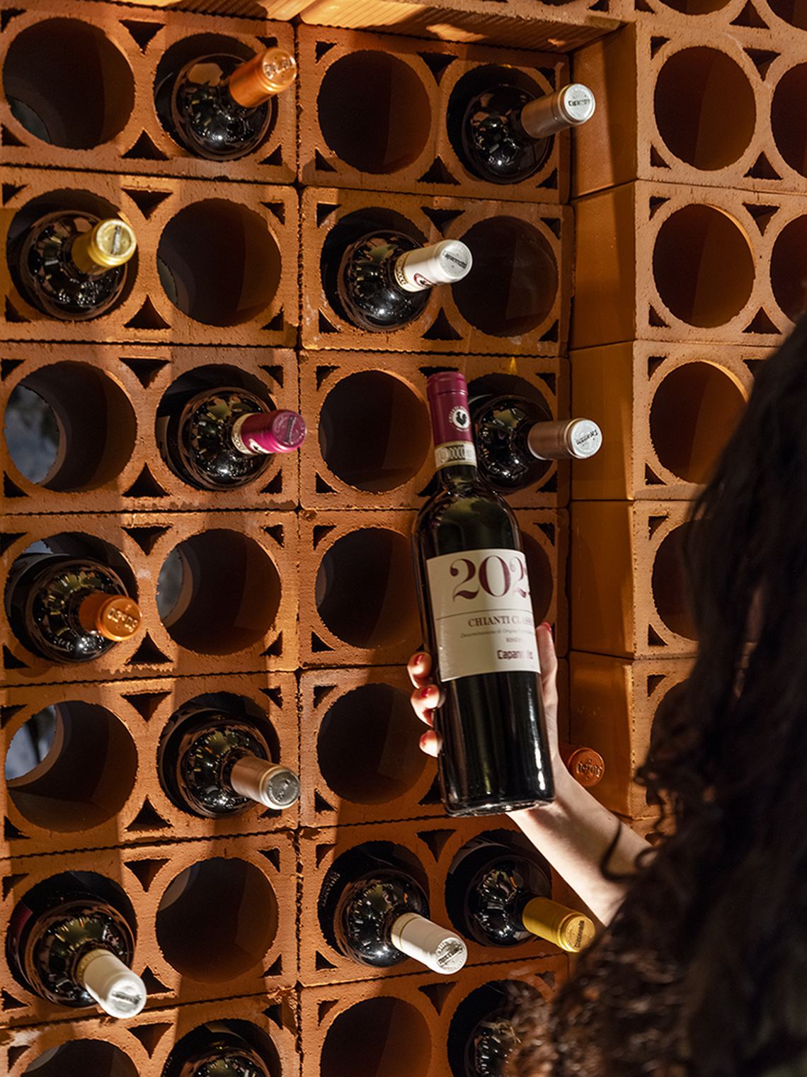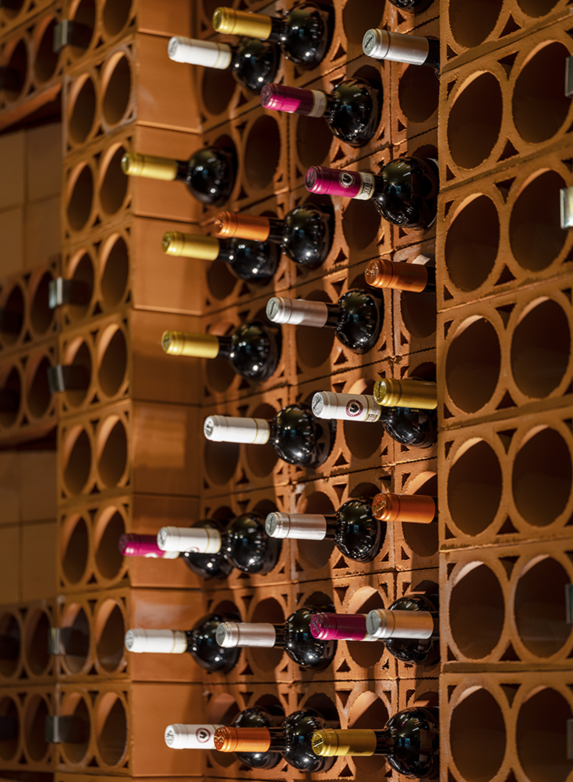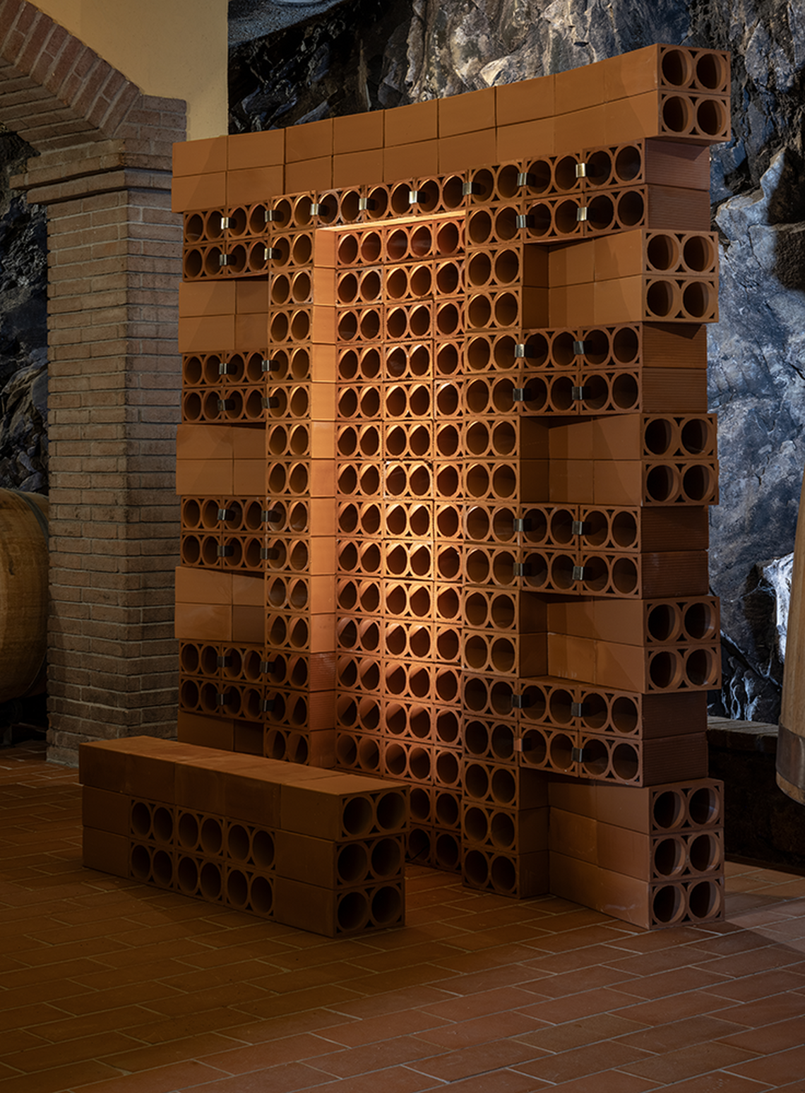 In collaborazione con l'Architetto Angelo Lavanga, i nostri portabottiglie in cotto sono stati inseriti come elemento compositivo all'interno della cantina, valorizzando l'ambiente con un equilibrio tra funzionalità e ricercatezza materica.